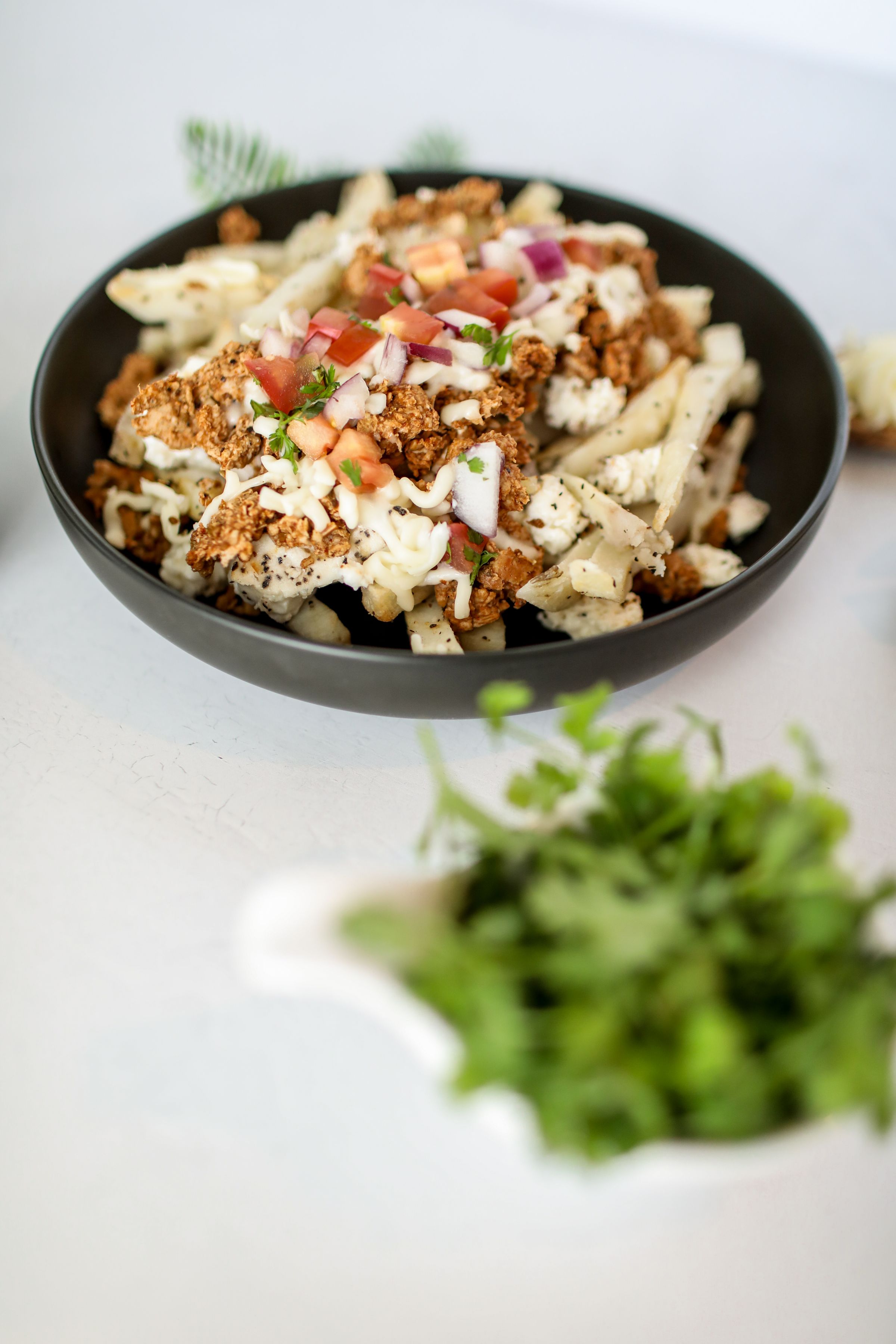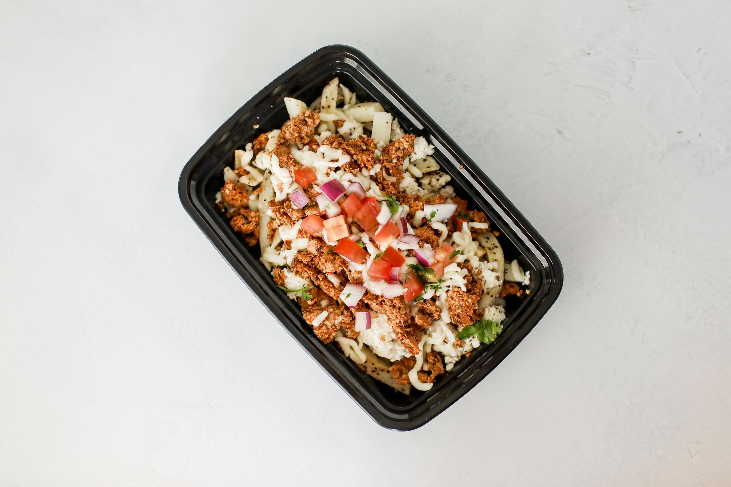 Indulge in our savory Chorizo Breakfast Nachos featuring flavorful chicken sausage and fluffy egg whites, all served on a bed of crispy French fries. Topped with creamy mozzarella cheese & fresh Pico de Gallo, this dish is a satisfying start to your day that’s bursting with delicious flavors!