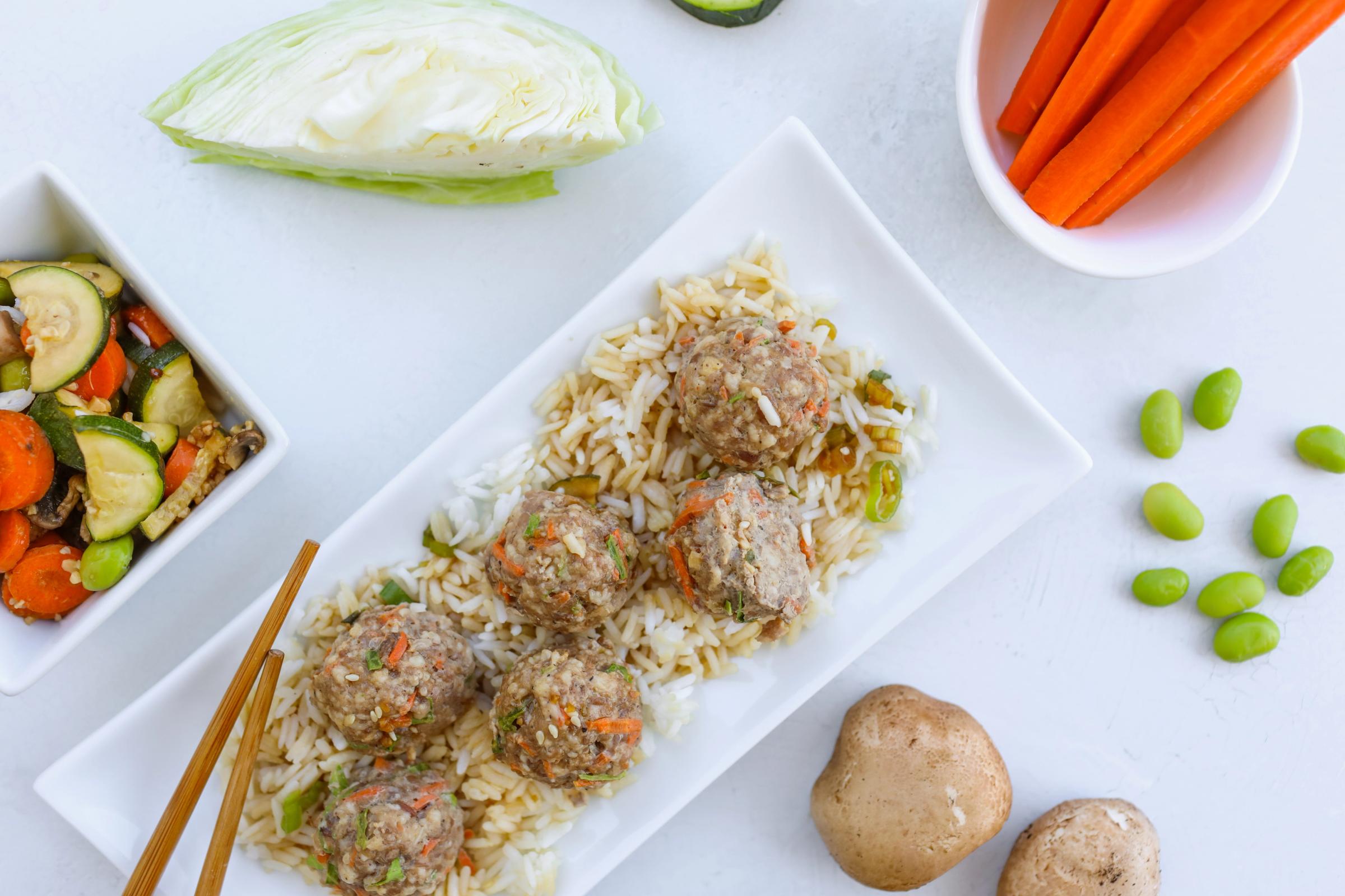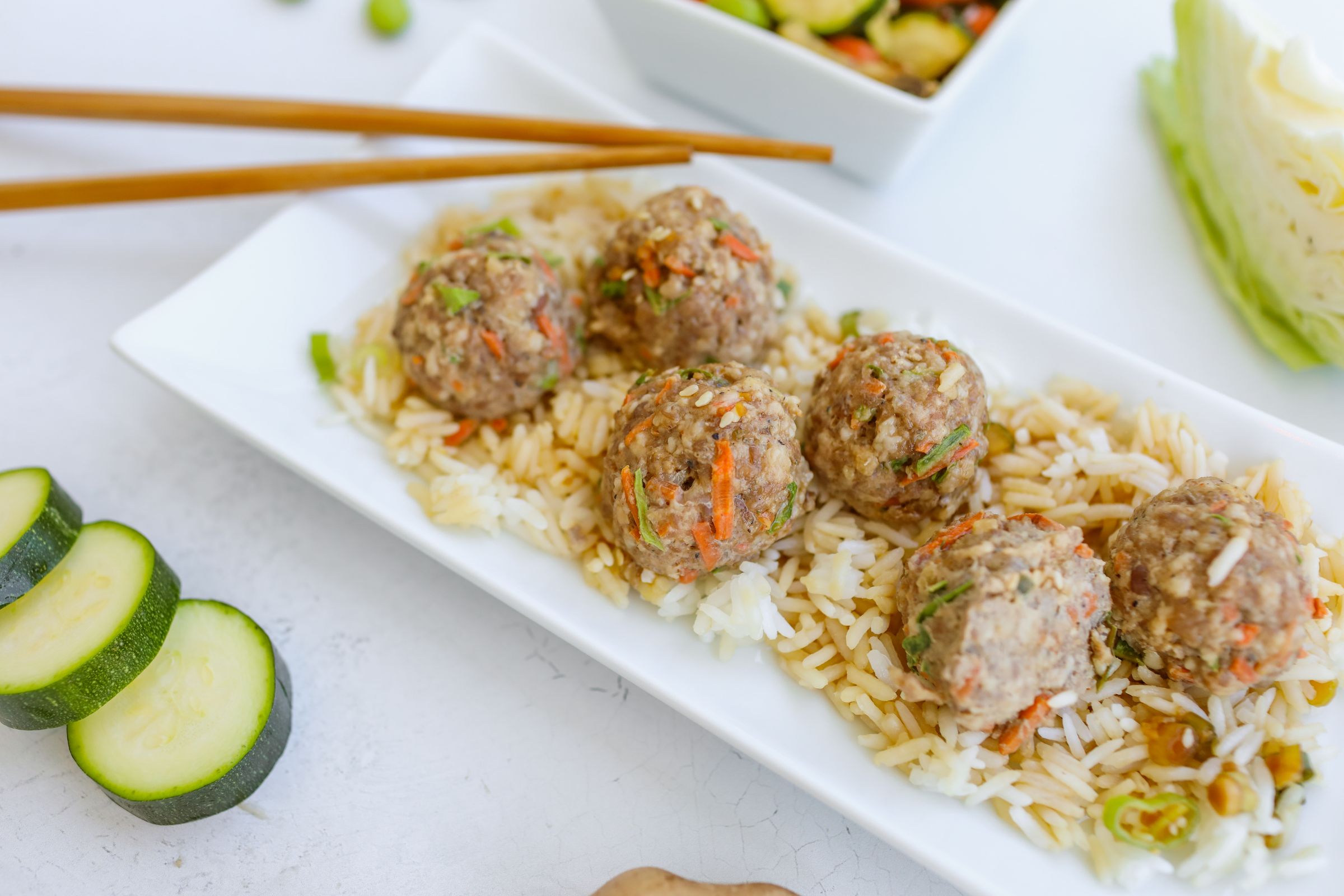 Big flavor in a little package! These mini pork dumpling balls are packed with garlic, ginger, and a hint of sesame—paired with a roasted veggie medley and a bold, savory Asian-style dipping sauce. They’re light, protein-packed, and perfectly portioned for easy eating – totally crave-worthy!