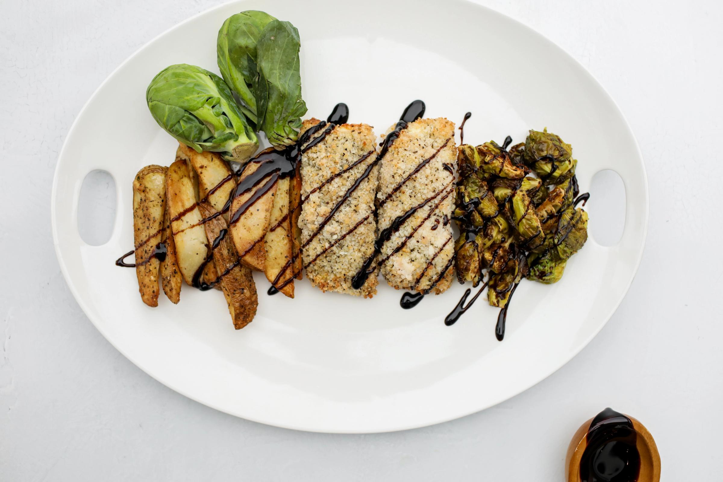Want a taste of the other side of the pond? Try this gluten-free, macro-friendly rendition of fish and chips - made with red snapper, potato wedges, and crispy brussels sprouts with balsamic glaze. It’s sure to leave you feeling fueled and satisfied!