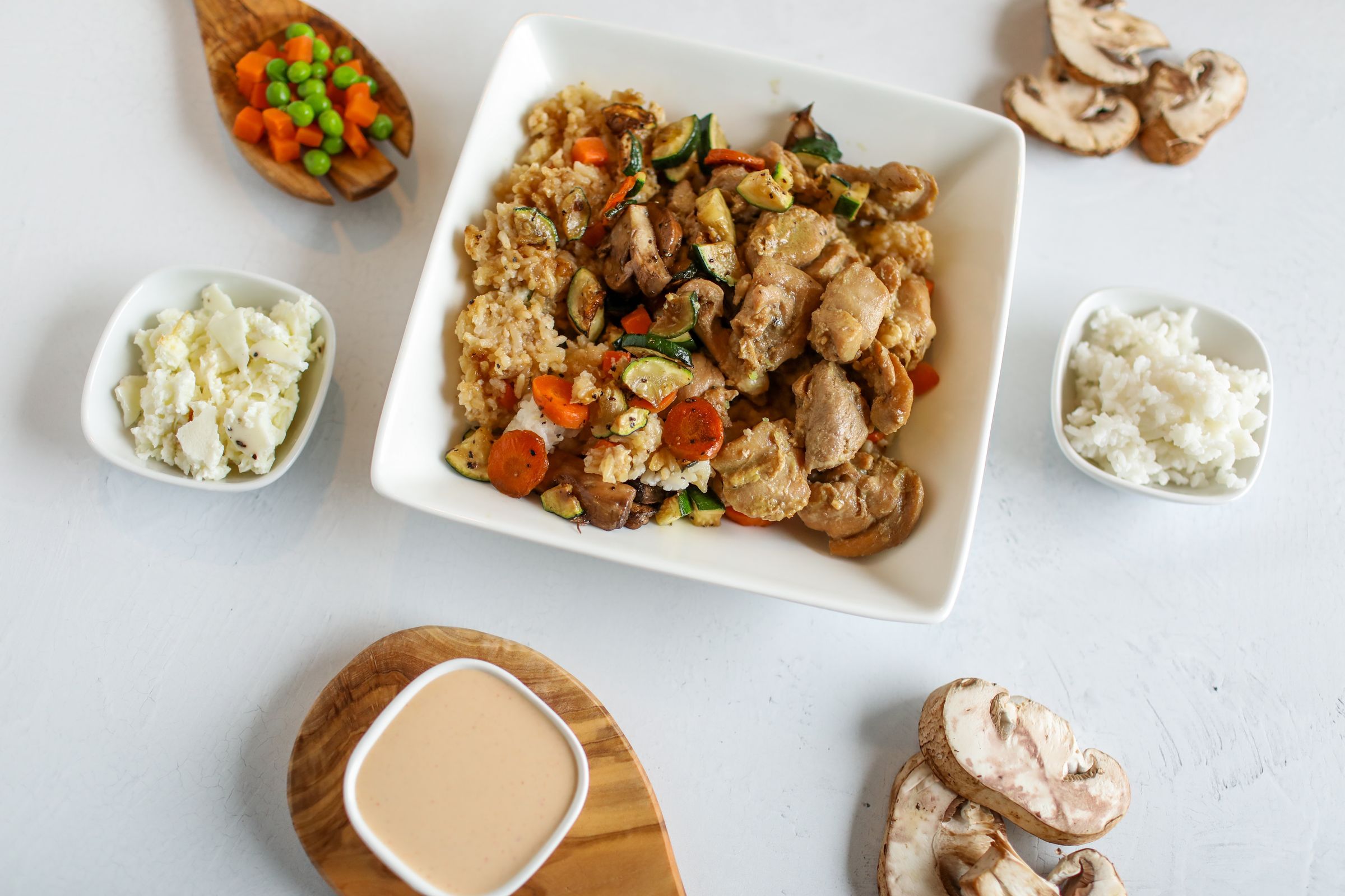 Experience the sizzle and aroma of our Hibachi Chicken Thigh Bowl, featuring tender and juicy chicken thighs cooked to perfection, served alongside a bed of flavorful fried rice, & infused with a colorful mix of carrots, zucchini, and mushrooms. Creamy Yum Yum sauce adds the perfect tangy & savory kick, where each spoonful offers a delightful medley of textures and flavors!