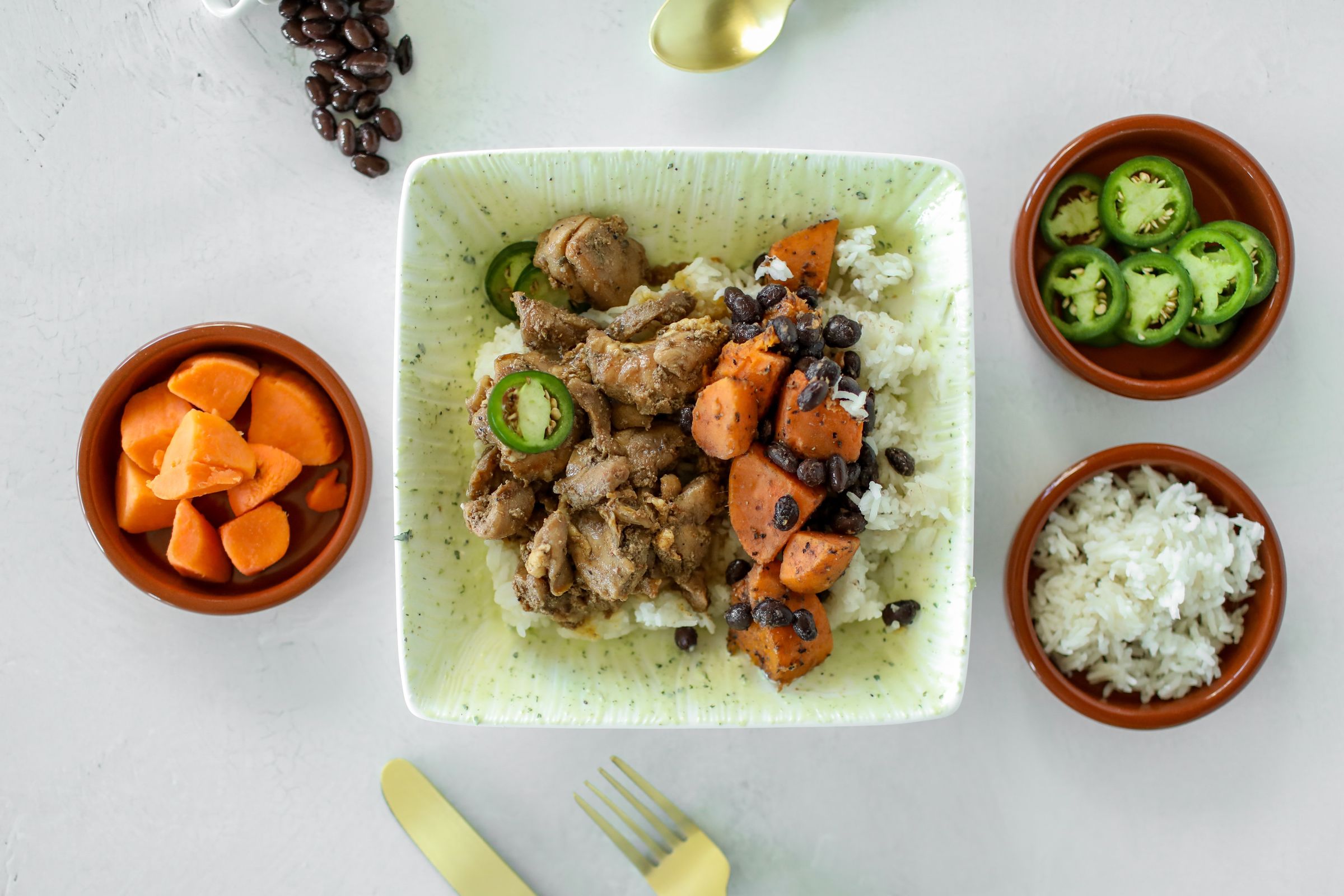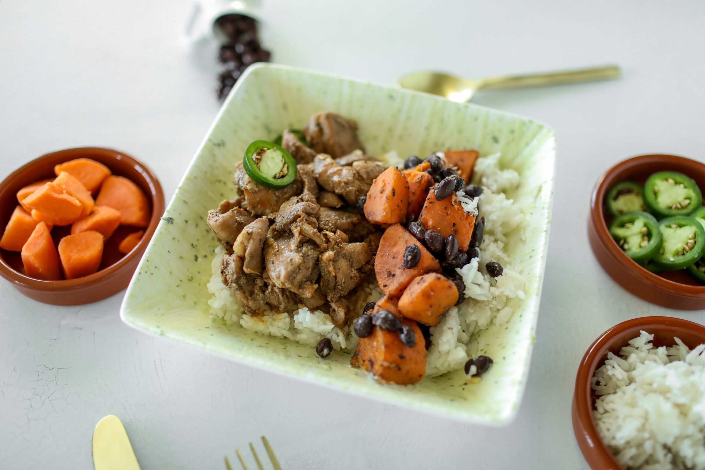 This Peruvian Chicken dish is tender and juicy, marinated in a blend of herbs and spices that bring out its rich flavor. The jalapeño slices add a low spice kick, while the sweet potato and black bean mixture provides a soft and delightful texture. The cilantro lime sauce adds the perfect finishing touch and ties everything together with a burst of freshness!