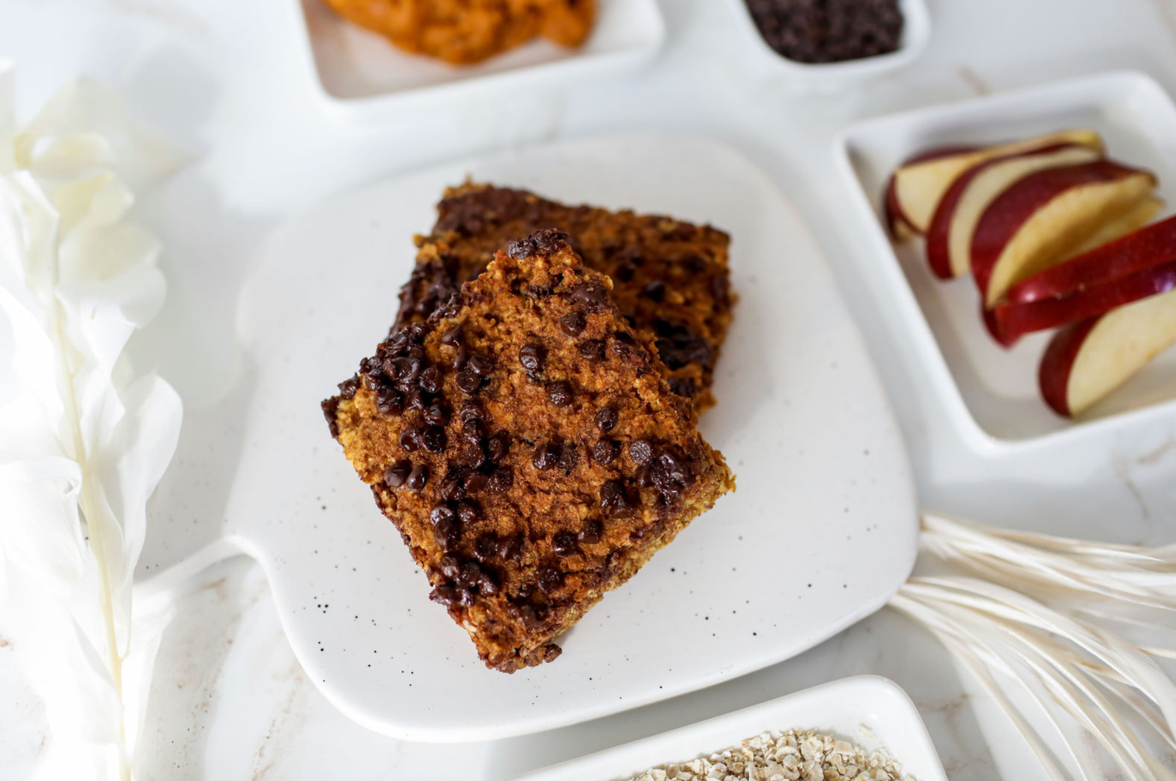 These soft and hearty pumpkin oat bars are packed with warm fall spices, crisp chunks of sweet red apples, and paired with savory chicken sausage patties. Made with wholesome ingredients, they’re the perfect balance of cozy flavor and satisfying texture — ideal for breakfast, snack time, or a guilt-free treat!