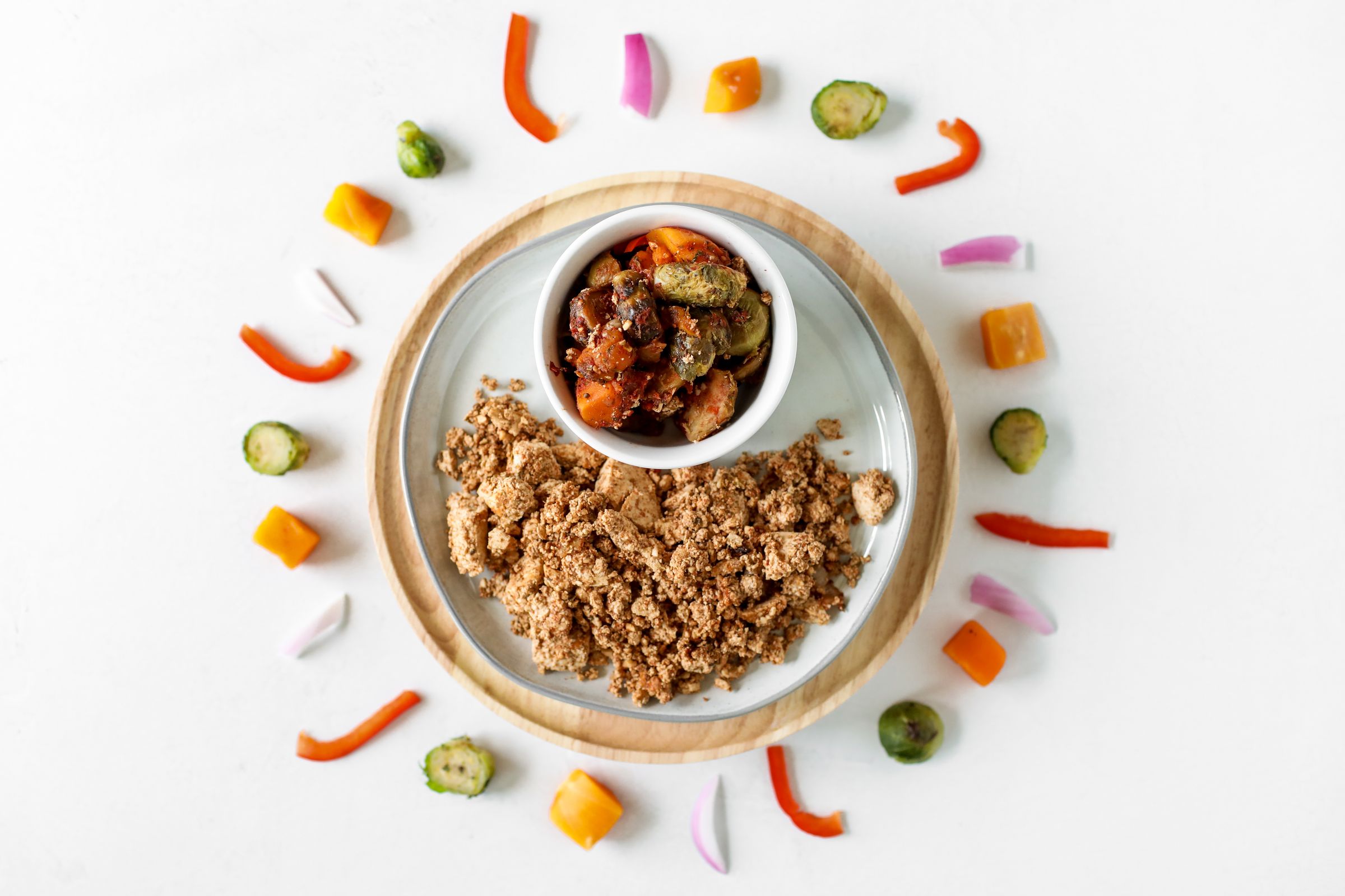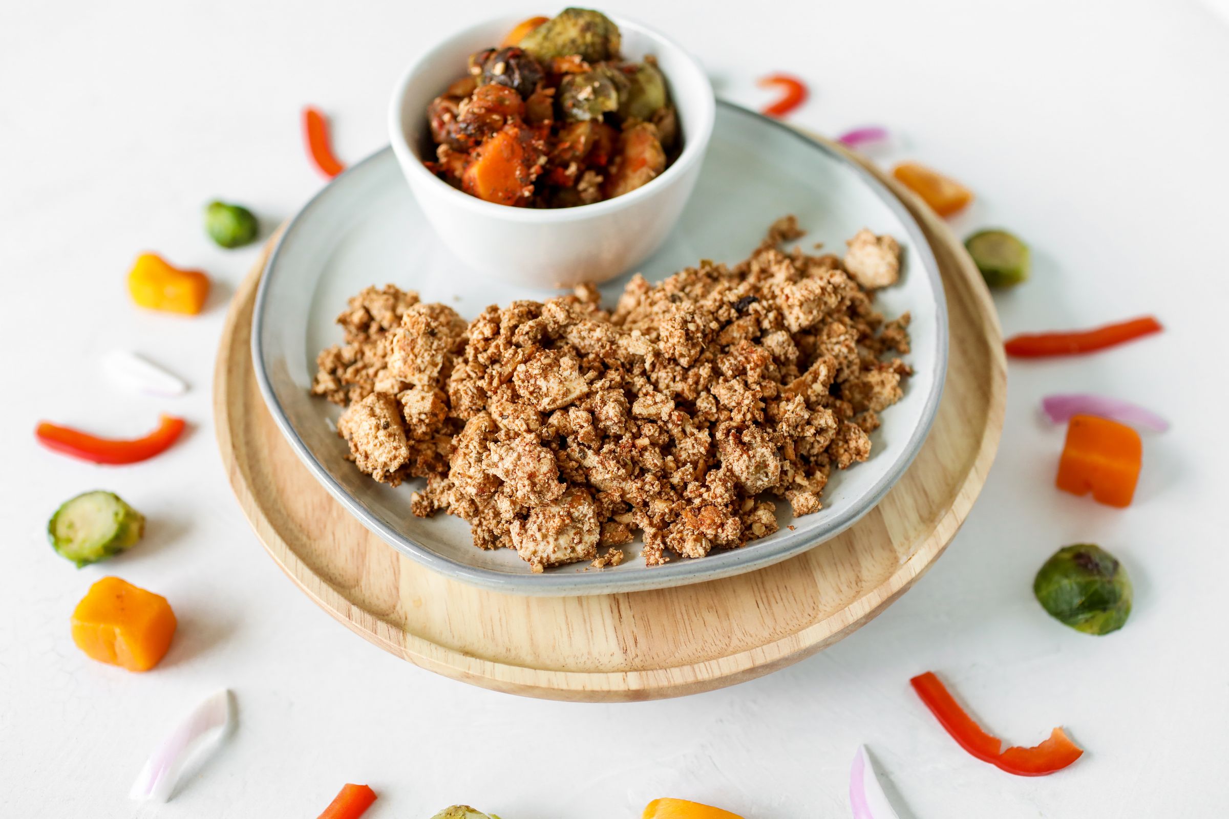 Indulge in a savory symphony of flavors with our plant-based Tofu Butternut Squash Medley. Our tofu, bursting with herbs and spices, is paired with tender chunks of roasted butternut squash and crispy brussels sprouts. Diced red onion and diced red pepper create layers of added texture and color to this delectable dish. Whether enjoyed as a hearty main course or a flavorful side dish, this medley promises to satisfy those food cravings!